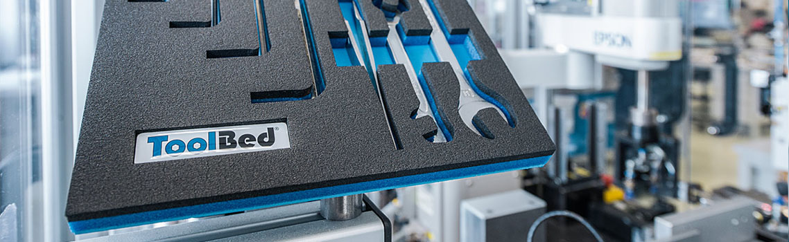 Increase your productivity and maintain long-term organization using professional hard foam inserts, shadowboards, and shadowboard foils for your tools, workpieces, office items, and much more. Use ToolBed-Designer, the first to market online customizing software for tool control inserts (since 2005). Capture your tool contours on-site with a unique ToolBed-Scanner (world’s first ToolScanner since 2011), or use ToolBed complete service for implementing your tailor-made organization and storage systems. Improve your work processes (CPI) with 5S and LEAN products by ToolBed – customized and inexpensive, starting with just one unit.